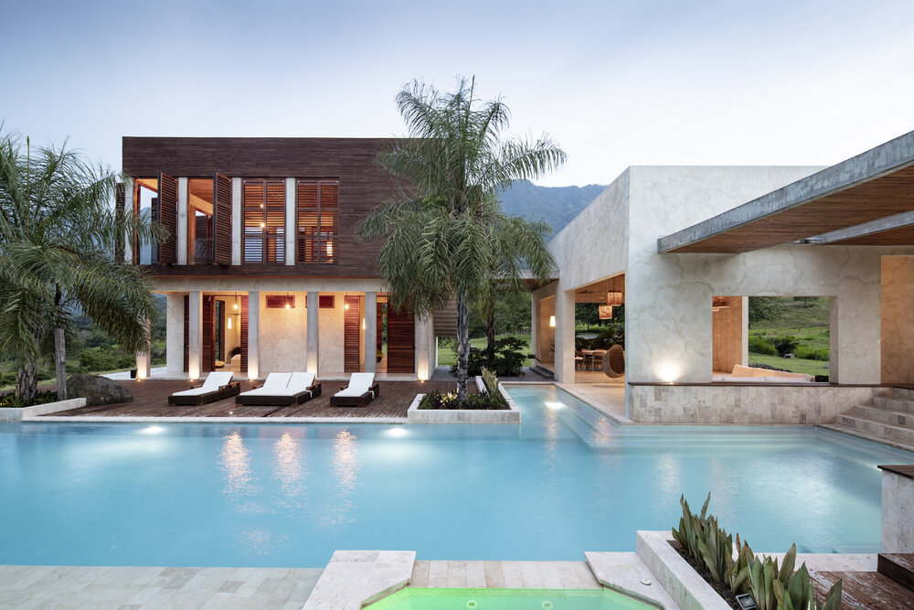 Surrounded by lush mountains and expansive valleys, Villa Kalafat is a striking modern retreat that celebrates the interplay of nature, geometry, and craftsmanship. Designed as a sequence of pavilions organized around a central pool, the villa blurs the line between indoor comfort and outdoor living, embracing the tropical climate with elegance and restraint.